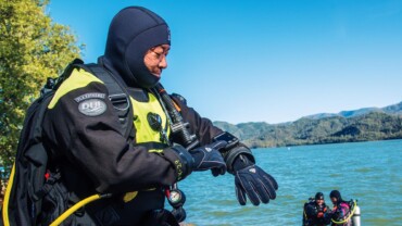 Du lernst auch verschiedene Arten von Trockentauchanzügen kennen und einfache Reparaturarbeiten und Wartungsarbeiten zu erledigen.